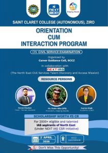 Saint Claret College (Autonomous), Ziro (SCCZ) is a Mission seeking to realize itself at the service of God and humanity. Specifically, SCCZ seeks to “mould intellectually competent, professionally skilled, spiritually evolved, morally upright, socially responsive, and culturally tolerant citizens, through holistic Claretine education, for advancing a civilization of love” (Mission Statement of SCCZ).